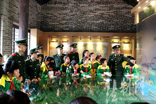 边检官兵为小学生讲解冯子材将军的英勇事迹