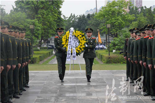 官兵在敬献花圈