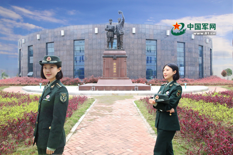 在原南京军区赠送的雕塑“星火燎原”前,挥别旧臂章。