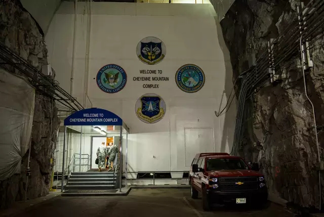 指挥中心外墙使用的是制造装甲战列舰所用钢材。图为指挥中心入口处。