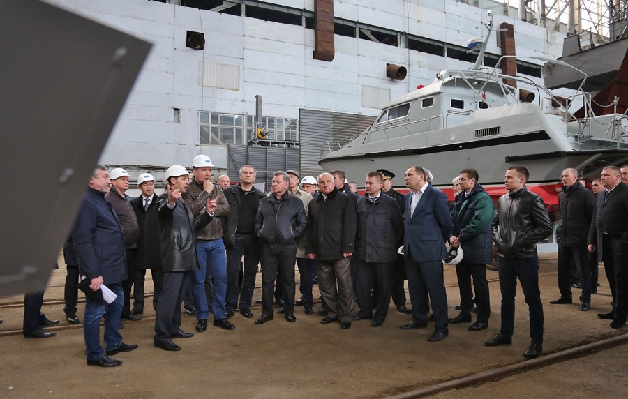 近日,俄罗斯副总理罗戈津视察了位于克里米亚的大海造船厂,船坞中一艘“野牛”气垫船正在等待维修。“野牛”气垫登陆舰是目前世界上最大的气垫船。中国曾与克里米亚“大海”造船厂签署了合同,购买2艘并仿制两艘该型气垫船。