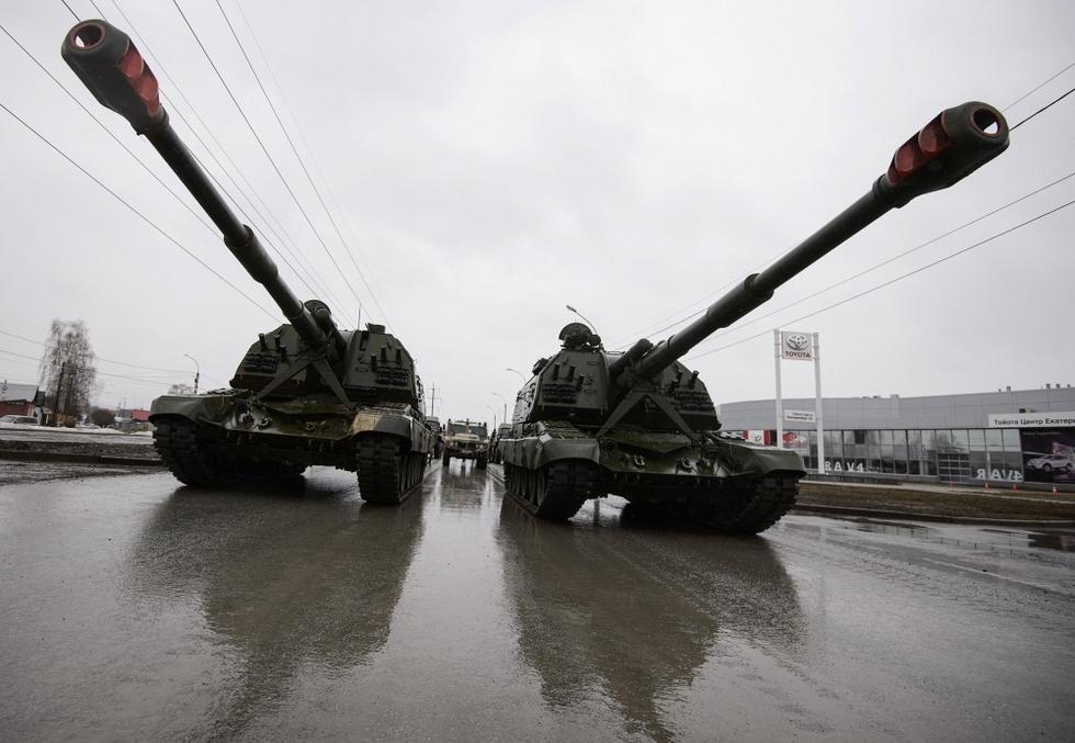 图为俄罗斯MSTA-S型152毫米自行火炮,于1989年服役。专供出口的2S19(MSTA-S)自行火炮装有ASUNO自动火炮火控系统,整个炮塔可安装在其它履带式底盘上。