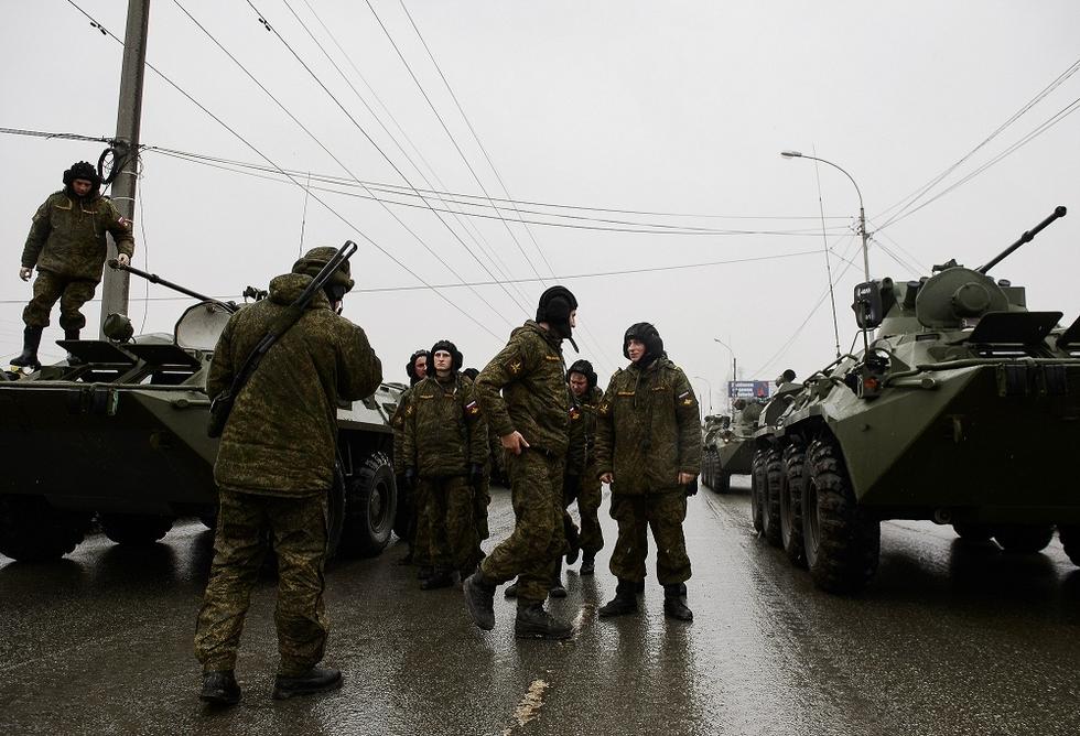 BTR-80型8×8轮式装甲人员输送车,是BTR-70型轮式装甲人员输送车的改进型,1984年开始装备。炮塔顶部可360°旋转,炮塔上装有1挺KPVT式14.5毫米大口径机枪,辅助武器为1挺PKT 7.62毫米并列机枪。车内可携带2枚9K34或9K38“针”式单兵防空导弹和1具RPG-7式反坦克火箭筒。