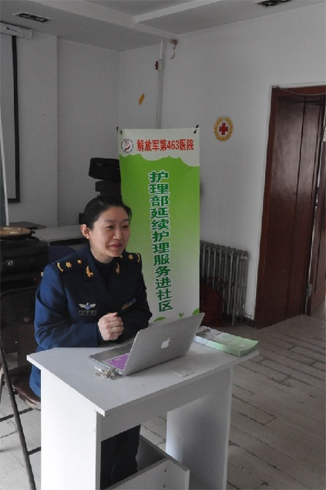 据了解,为推进延续护理服务,拓展护理服务内涵,提高百姓的健康保健意识,解放军第463医院护理部专门组织9名护理人员来到沈阳市洪福社区开展“延续护理服务”进社区活动。这些“白衣天使”刚走进社区活动室不久,就吸引了近40名社区居民的积极参与,受到了大家的热烈欢迎。