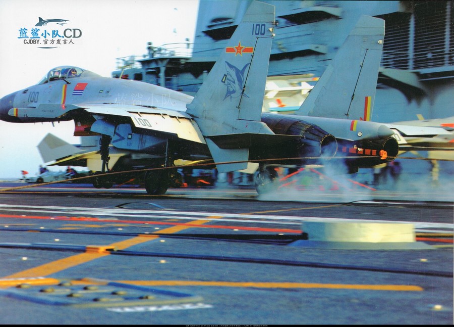 日前,中国海军歼-15舰载战斗机在辽宁舰航母上的着舰画面在网络上曝光,画面精准地抓住了歼-15舰载机着舰尾钩挂上拦阻索的瞬间,十分精彩。(鸣谢:超大军事 蓝鲨小队)