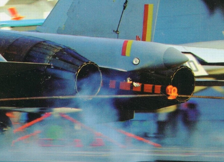 辽宁舰舰载机歼15训练新照曝光 尾钩挂上拦阻索瞬间超亮眼