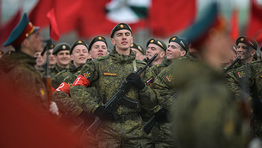 当地时间4月11日,俄在莫斯科近郊举行庆祝伟大卫国战争胜利71周年阅兵式首次彩排。图为受阅步兵方队。(网页截图)