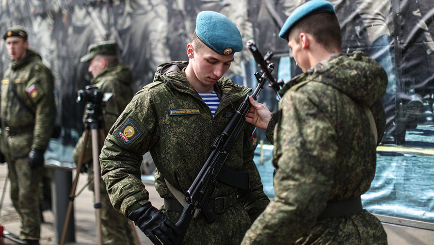 当地时间4月11日,俄在莫斯科近郊举行庆祝伟大卫国战争胜利71周年阅兵式首次彩排。图为受阅军人在互纠军容风纪。(网页截图)