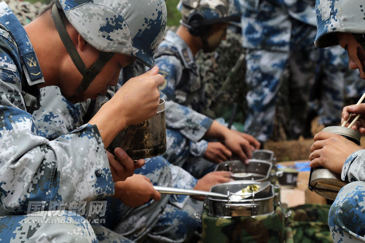烹制浅盘食品方便又快捷,官兵们吃得很香,较好地补充了体力。