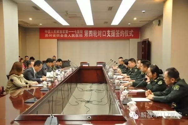 签约仪式上,易丙涛政委现场表态,将认真总结过去三轮帮扶的经验做法,认真贯彻落实党员央推进的“健康中国”战略和全军的统一部署要求,针对织金县人民医院的发展实际,进一步深化结对帮扶举措,务求结对帮扶实效,力争形成互帮互学相促进的对口帮扶长效机制。按照“帮扶一科、辐射一院,帮扶一院、惠及一县”的指导思想,尽心尽力地帮助织金县人民医院进一步提升建设发展水平。积极发挥“互联网+”的优势,利用建立网络医院的时机,打通网络结对帮扶的最后通道,积极推进专家资源共享、学术课题共研、技术项目共同,实现无缝对接和全天候帮扶,使第四轮结对帮扶工作走上网络发展的快车道。