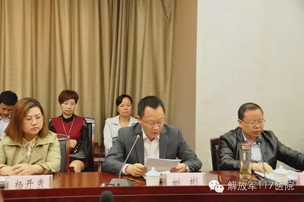 签约仪式上,潘发勇副书记高度肯定了第117医院十五年来与织金县、织金县人民医院结下的深情厚谊。潘副书记介绍说,在连续三轮的对口支援下,织金县的医疗卫生事业发展的很快,二级甲等医院达到了3家,今年增创了一家三乙医院,成功创建省级卫生应急综合示范县和国家计划生育优质服务先进县。尤其在第117医院大力的支持下,县人民医院成功申创为综合性的二级甲等医院,实现二甲医院零的突破。织金县人民医院院长姚彬对第117医院无私的帮扶十分感谢,详细介绍了县人民医院的基本情况。姚院长介绍说,医院的人才培养主要结合城乡对应资源政策,派出的医护骨干经过第117医院精心的培育,回到岗位都是过硬的技术骨干。人民医院临床科室由6个增加至22个,医技科室由4个增加至8个,科室现有41个。虽然近几年织金县人民医院发展迅速,但高级技术人员仍非常紧缺,姚院长希望通过第117医院的第四轮支援帮扶活动,持续改进医疗服务质量,打造一流的县医院就医环境,共享高水平、高品质的诊疗服务,推进医疗事业的发展。