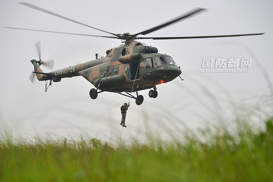 东部战区陆军某陆航团联合某部开展跨昼夜机降协同训练。
