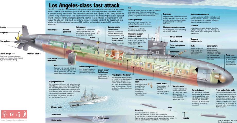 美海军”辛辛那提“号(洛杉矶级)攻击型核潜艇。