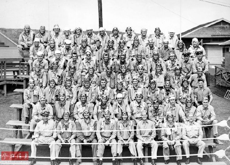 相比之下,美海军实际还增加了飞行员的训练时间,例如1943年,每人的训练时间增至500小时,同时保持着约18个月的飞行员培训项目。即使这样在战时,仍能保证向前线稳定补充飞行员。 图为1943年,在夏威夷毛伊岛训练场的美海军VT-10鱼雷机中队飞行员合影。