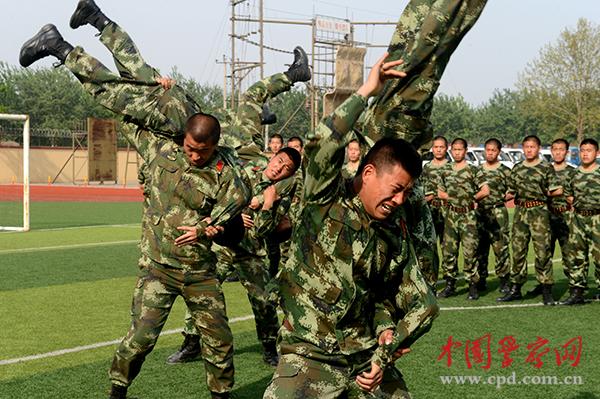 4月18日,河北省公安边防总队特勤队官兵在进行擒敌技术训练。