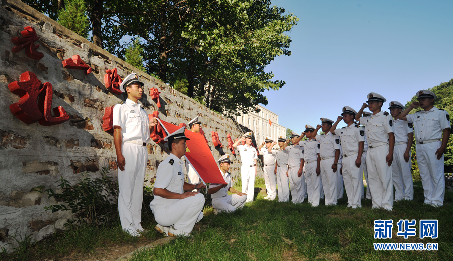 资料图片:老山沟精神前向党旗宣誓。(图片由海军政治工作部宣传局提供)