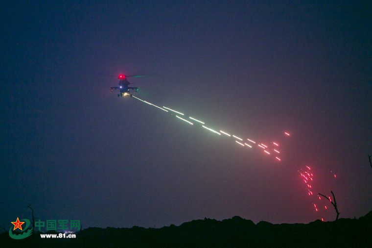 4月下旬,第1集团军某陆航旅组织部队展开跨昼夜实弹射击训练,重点对某新弹种尽远射击、夜间海上突击作战、地面引导打击等多种新战法进行实弹检验。