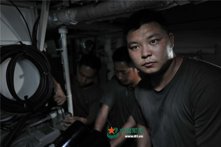 机电专业出身的艇长叶文龙带领机电兵们正在紧张的抢修机器,在闷热的船舱里大汗淋漓。