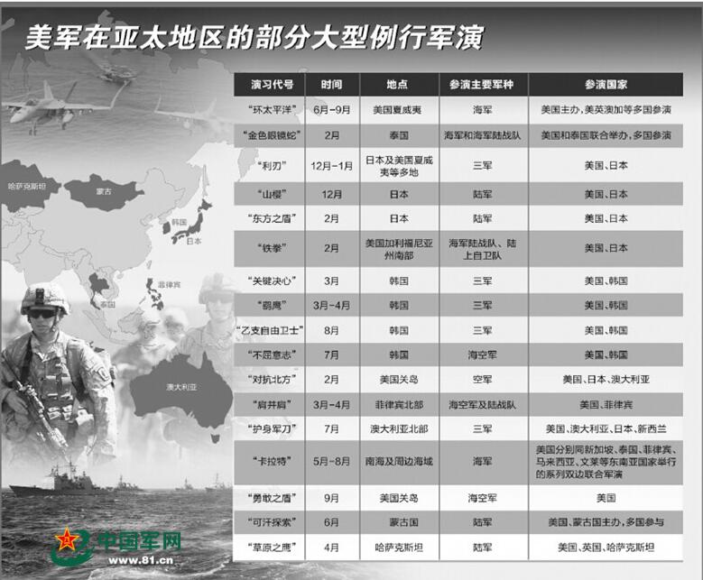 正如美太平洋司令部军演方案设计主管卡尔·贝克尔所指出,近年来美军系列演习的目标是瞄准“新兴军事力量”,防备亚太地区崛起的大国。分析认为,军演是军事训练与实际战争之间的“焊接点”,近年来美国亚太军演的实战性愈来愈强,这种强烈的指向性,不得不让人警惕和关注。