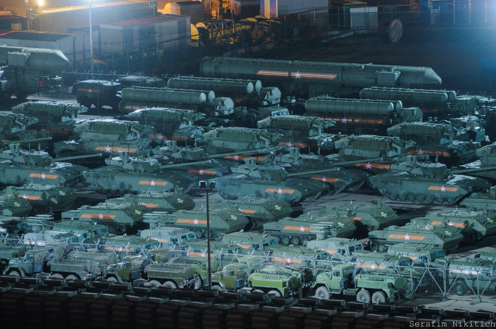 俄阅兵夜间彩排核巨兽招摇过市