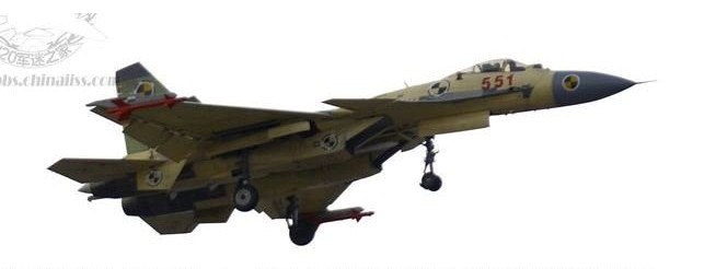 同年曝光的图片中,歼-15 0001号原型机551将右侧发动机更换为FWS-10H发动机进行试飞。