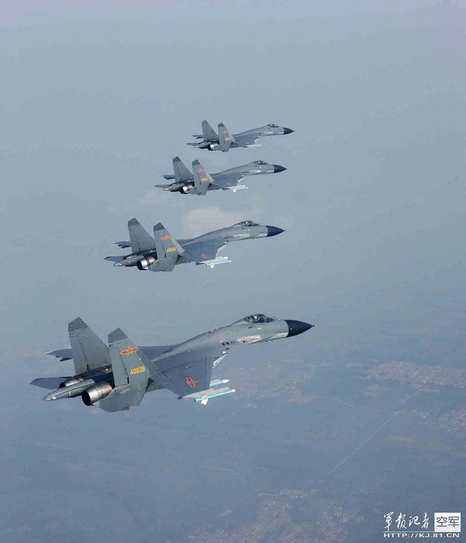装备“太行”发动机的歼-11B战斗机编队飞行