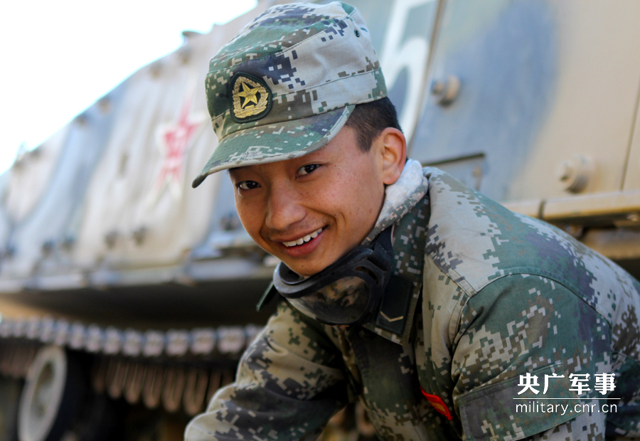 装步二连列兵刘志祥在装甲车场学会保养技能,一脸得意的笑。 黄腾飞 摄