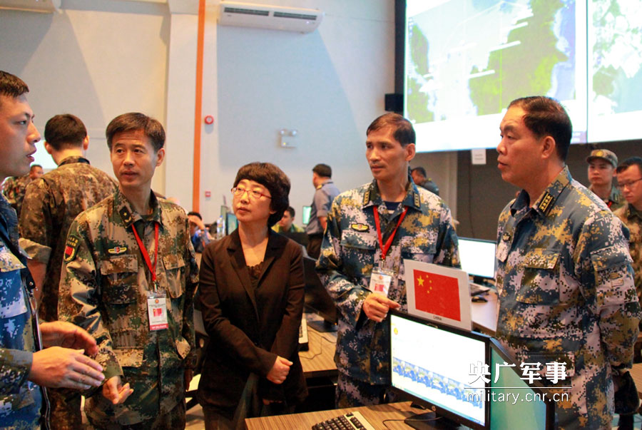 图为中国高级参观访问团代表、驻文莱大使和参演指挥所指挥员胡伟华参观多国协调中心联演指挥部。陶宏祥摄