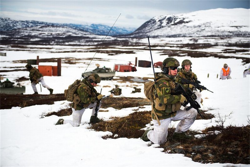 2016年4月,挪威陆军机械化营士兵的战术演习,该部队装备BMP CV-90战车。