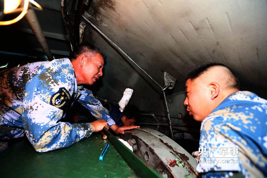 深入主机舱,和官兵一道检修装备。 代宗锋摄