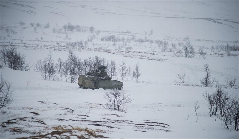 2016年4月,挪威陆军机械化营士兵的战术演习,该部队装备BMP CV-90战车。