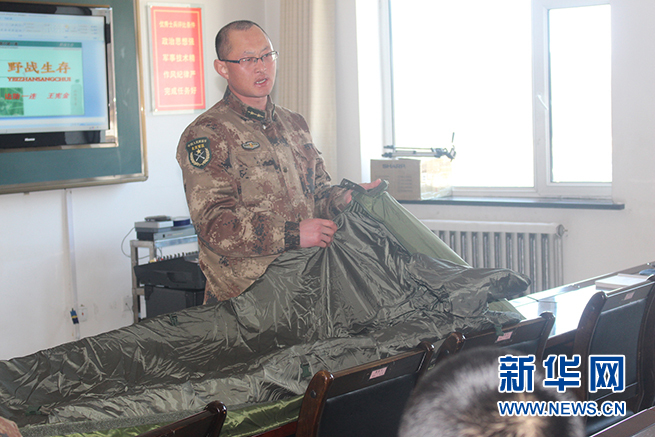 2015年3月25日,杜宏在连队向官兵讲解战备器材的使用及管理规定。(图片由内蒙古军区伊木河边防连提供)