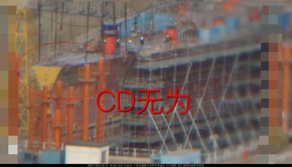 安装舰艏分段(图片来源 超大军事)