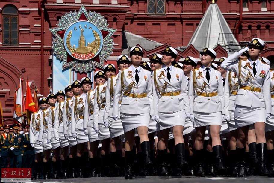 女兵方阵走过红场。
