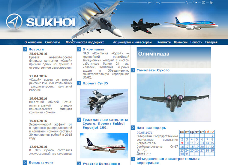 苏霍伊航空集团官方网站截图。