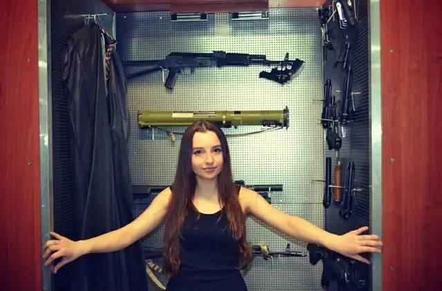 睡在枪堆里的俄罗斯美女军迷