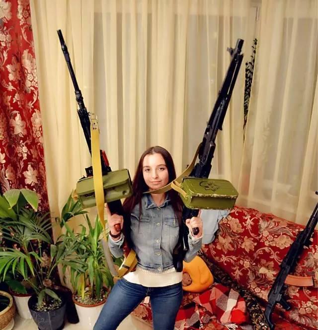 睡在枪堆里的俄罗斯美女军迷