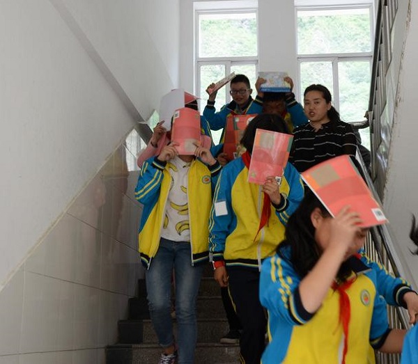 汶川县银杏小学演习现场。(汶川县银杏小学供图)