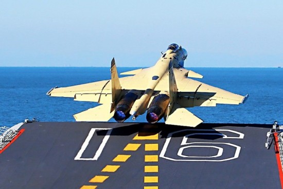 资料图:歼—15飞机在“辽宁舰”上滑跃起飞。