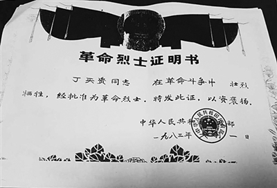 一次偶然,张抗美打听到丁灭资有个妹妹叫丁彦茹。费尽周折,张抗美终于找到丁彦茹,尤为可贵地找到了当年地方民政局为丁灭资核发的烈士证和部队寄到家中的老照片。张抗美第一时间与部队联系,将丁灭资的遗物和相关资料寄到部队,这才让烈士再次“回”到了旅史馆。