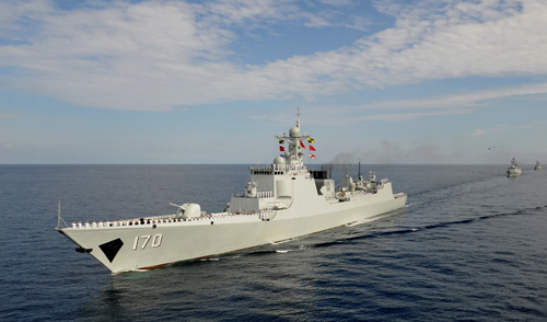 资料图片:中国南海舰队某驱逐舰支队远海训练,在南海某海域进行编队运动。
