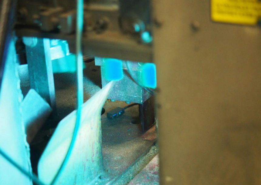 切割之后在弹壳上打印标识,用强光进行快速干燥,使打印标识不会模糊。