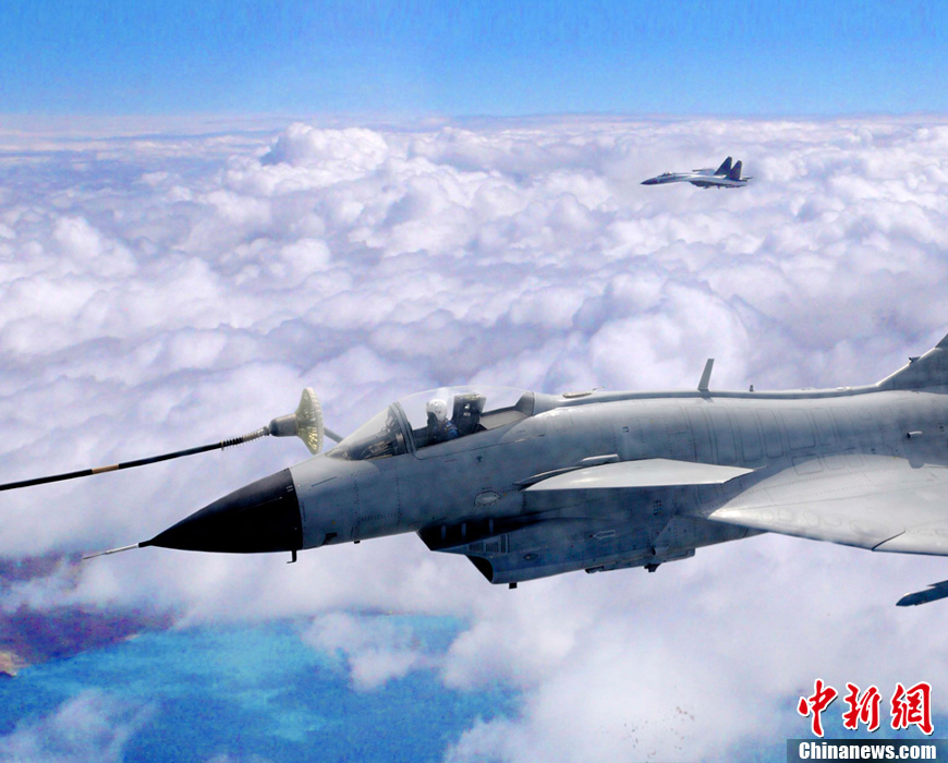 2013年11月15日,沈空航空兵某团首次完成成建制国产新型战机空中加油普训任务。参训飞机高标准完成所有课目训练,并实现了对接成功率100%,总结出一整套空中加油普训经验,战斗力水平得到整体提升。图为空中加油单座机。中新社发 曹占礼 摄