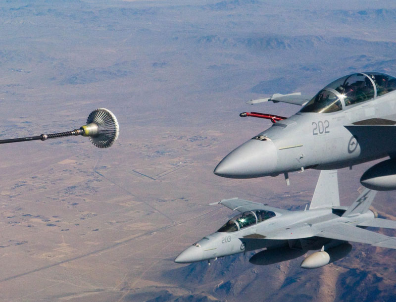2010年3月20日,澳大利亚空军超级大黄蜂战机正在进行空中加油作业。图片来源:澳大利亚国防部网站