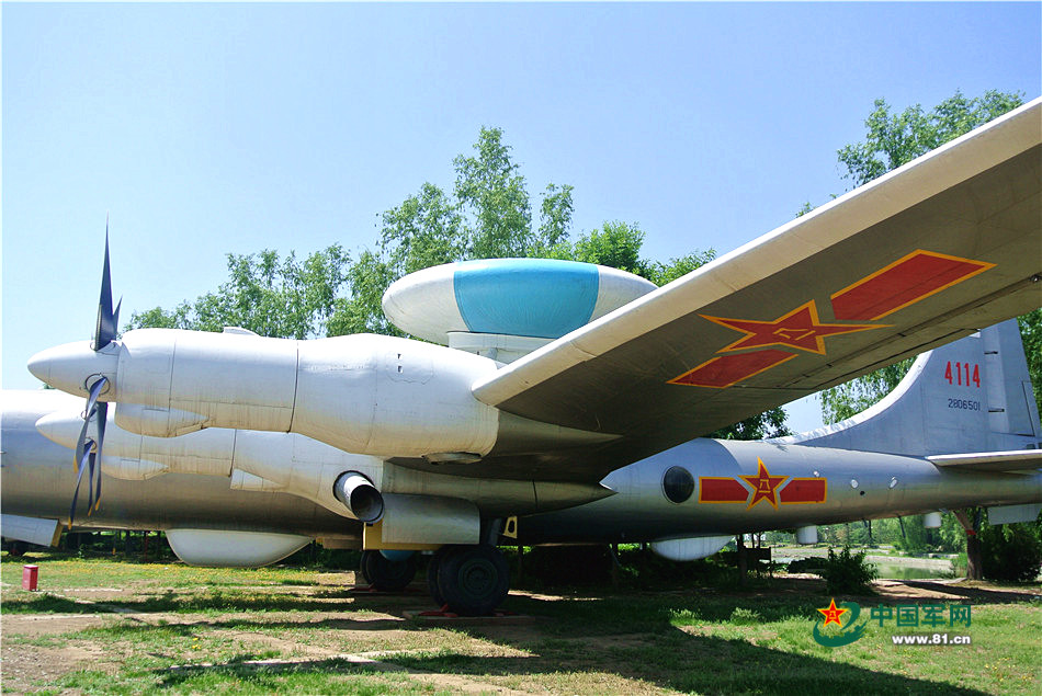 这架编号为4114的“空警一号”飞机,2014年被评为国家一级文物。“空警一号”是我国在20世纪60年代末,以图-4重型轰炸机为载机,自行改进研制的第一架空中预警指挥飞机。通过一系列改装,于1971年首飞成功,“空警一号”是我国第一架预警机。