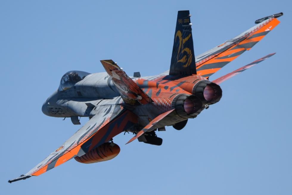 西班牙FA18战斗机起飞。