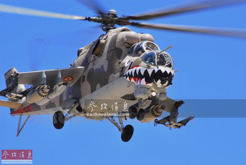 除猛虎涂装外,鲨鱼嘴涂装版米-24的曝光率也很高,例如图中的波兰米-25(米-24出口型),就采用了鲨鱼涂装。