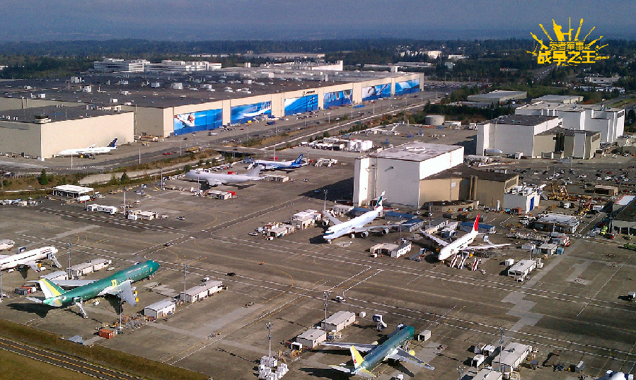 位于华盛顿州的埃弗雷特工厂是波音旗下的最大工厂,同时也是世界上最大的飞机制造工厂。这里可生产除了波音737以外的所有民用客机,图中左上的总装厂房是目前世界上体积最大的建筑,达到1330万立方米,工厂占地总面积为415公顷.图为2011年10月,埃弗雷特工厂航拍图。