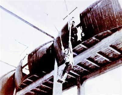 上世纪50年代,伞塔跳伞。(图片提供:中国空降兵军史馆)