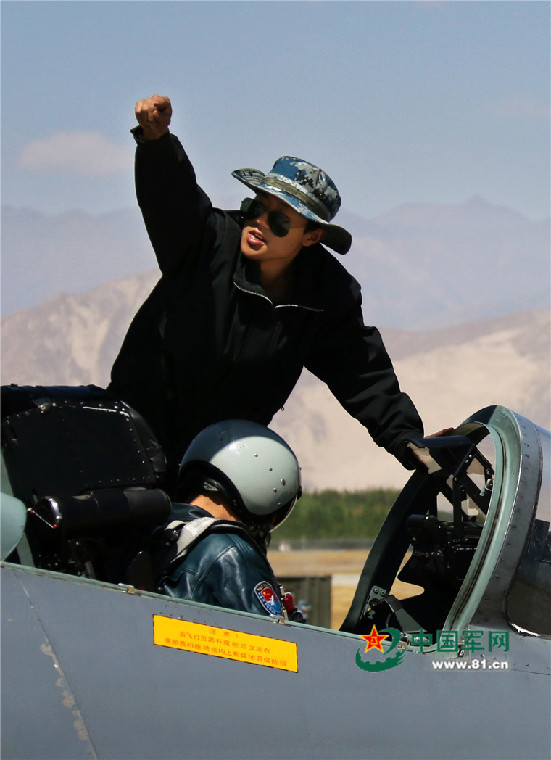 飞行员登机后,机械师示意“开车”,战机准备升空。